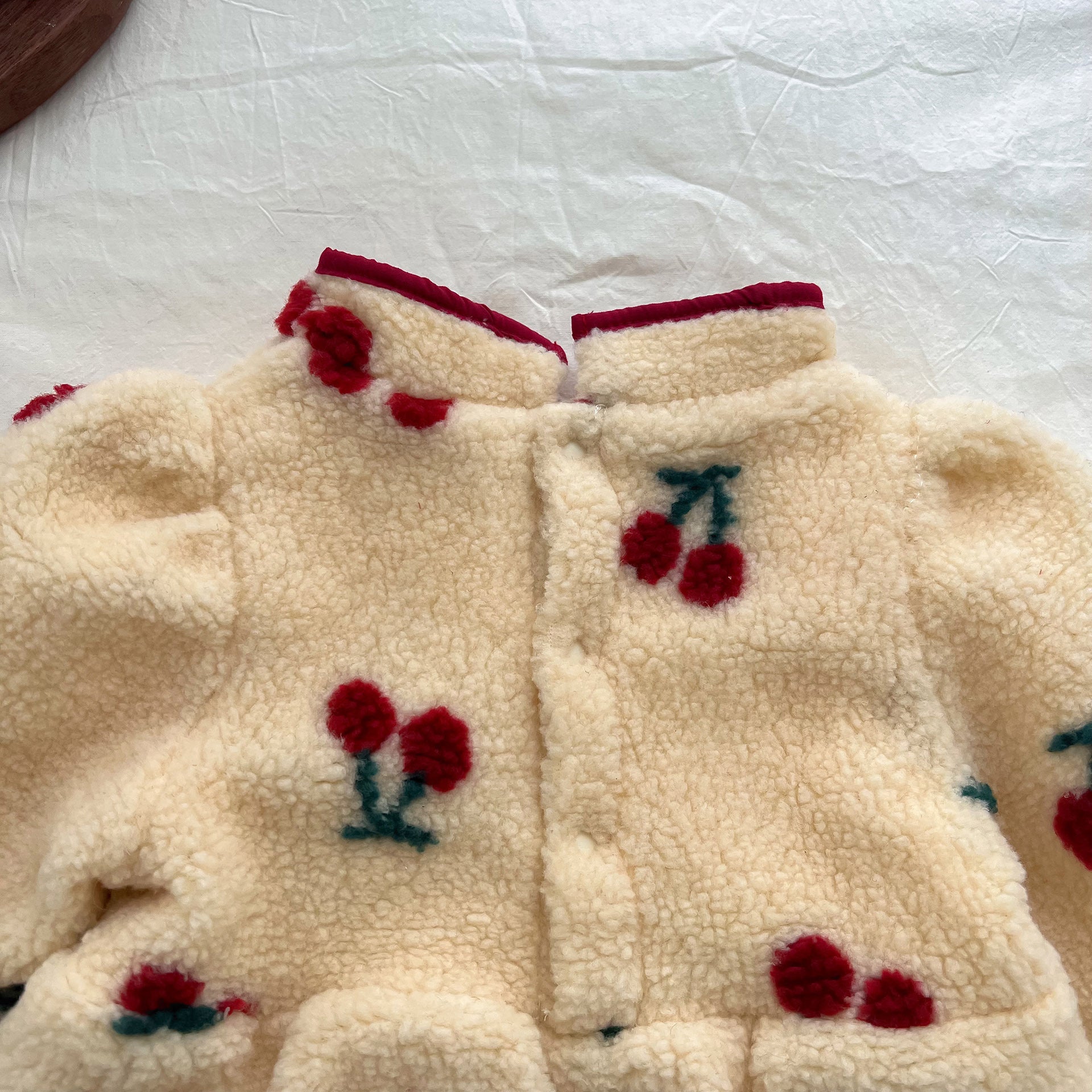 The coziest kind of cute. Our Mini Major Cherry Puff Romper is the perfect blend of warmth, whimsy, and winter style. This plush one-piece features a soft fleece exterior, delicate cherry embroidery, and an oversized collar with a bow for extra charm. Whether it’s a baby shower gift or your little one’s seasonal showstopper, this romper brings all the cozy vibes.
