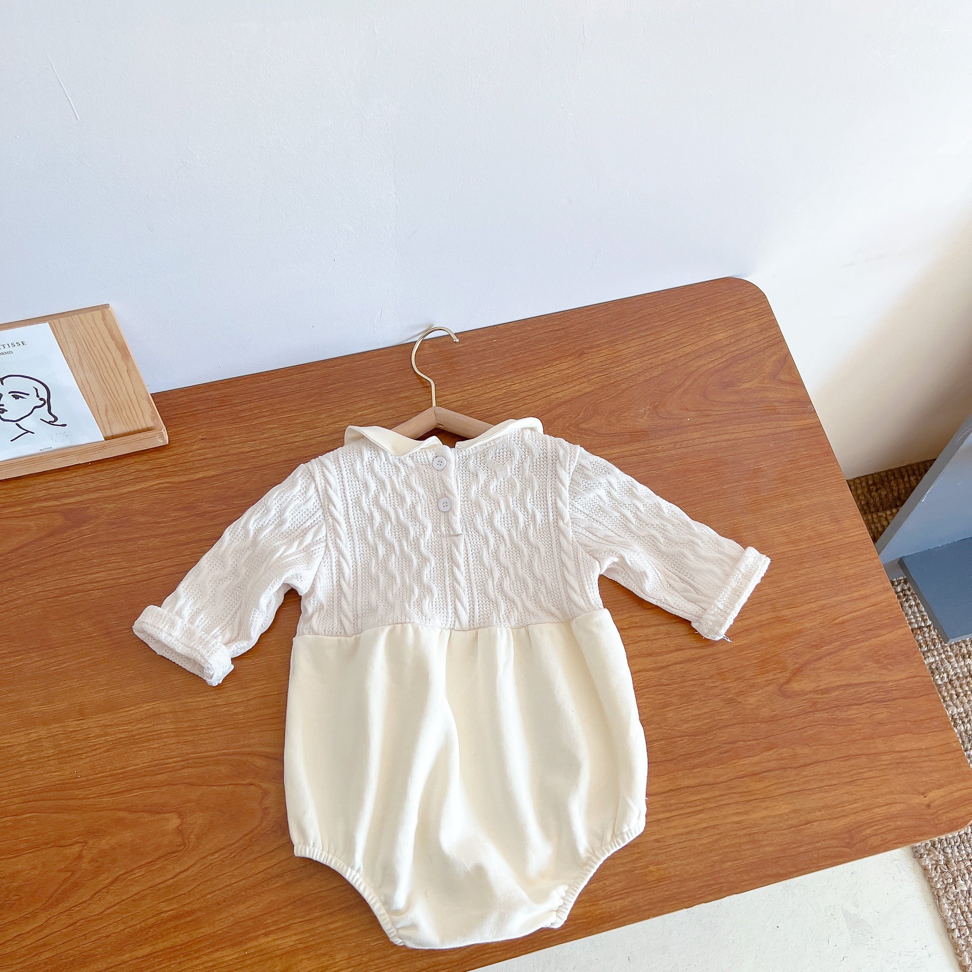 This ivory knit romper features a classic collar and gentle stretch for all‑day comfort — the perfect mix of cozy and dressy for baby showers, family photos, or just everyday cuteness.