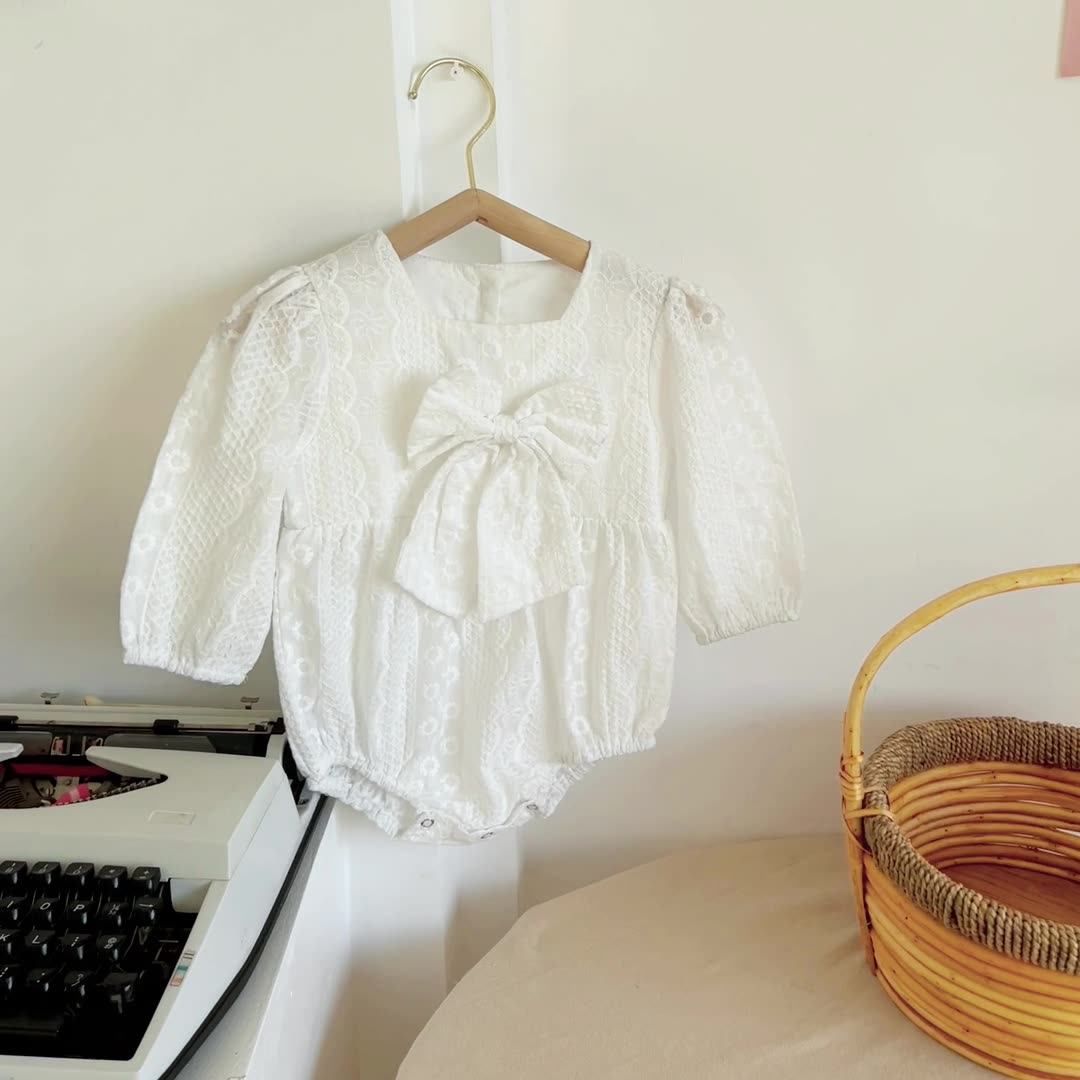 The Lace Bow Belle Romper is made with soft fabric, a sweet lace overlay, and a charming bow accent — the perfect outfit for special occasions, milestone photos, or just making everyday moments feel magical.