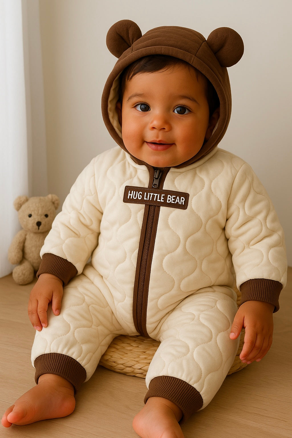 Bundle them up in the cutest way possible! The Little Bear Snowsuit is warm, padded, and finished with playful bear‑ear details on the hood — perfect for winter walks, stroller rides, and snowy adventures.