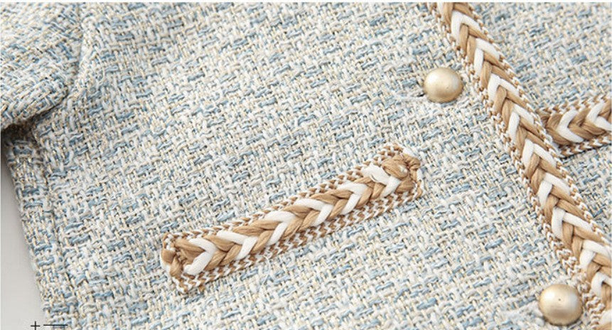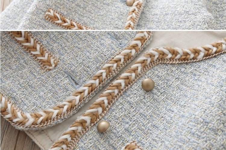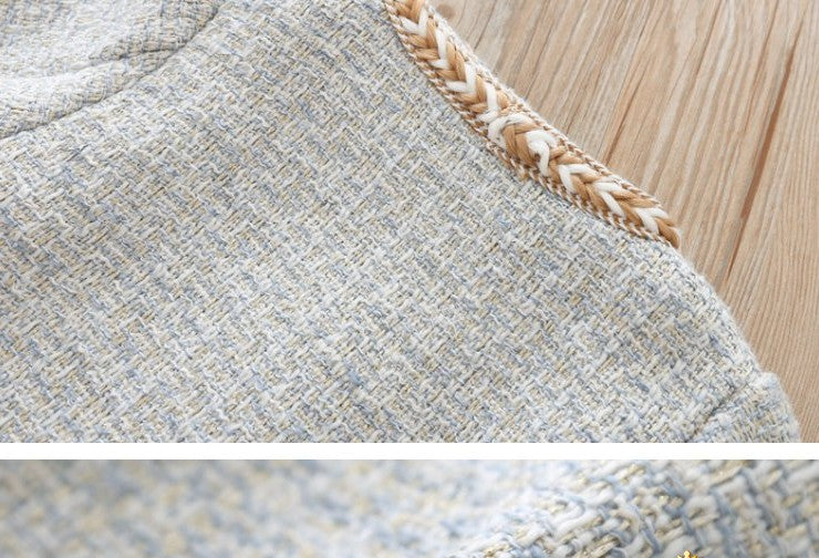 A dreamy combination of luxe and "GirlyLike". This two-piece dress features a soft tweed cardigan with gold braid trim and a full tulle skirt. Perfect for twirls, tea parties, and being the star of any occasion.